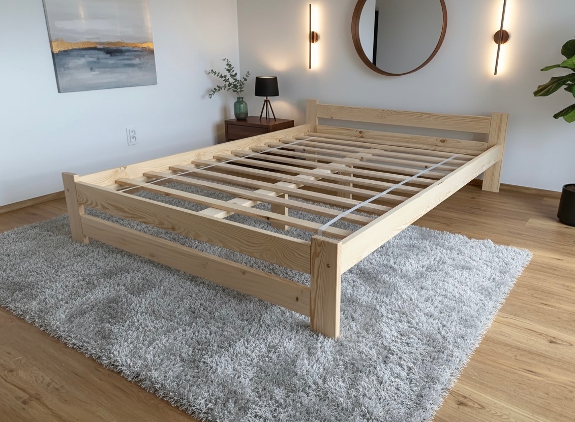 Postel je NOVÁ vyrobena z masivního borovicového dřeva. Součástí je také laťkový roštem.