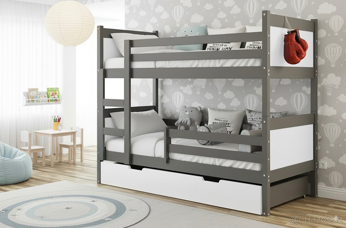 NOVÁ Patrová postel palanda grafit bila MASIV
