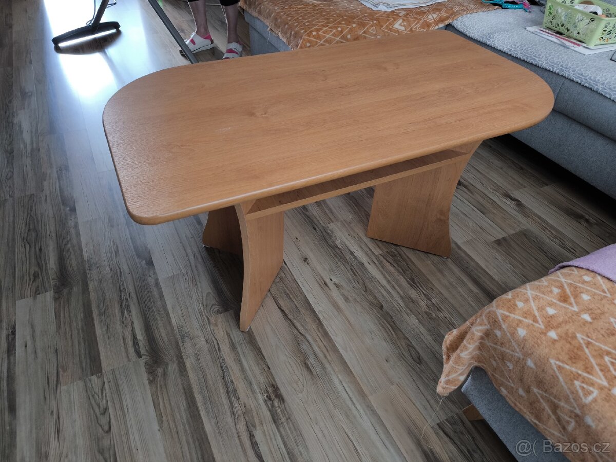 Prodám zachovalý konferenční stolek délka 111 cm, šířka 60 cm, výška 55,5 cm.