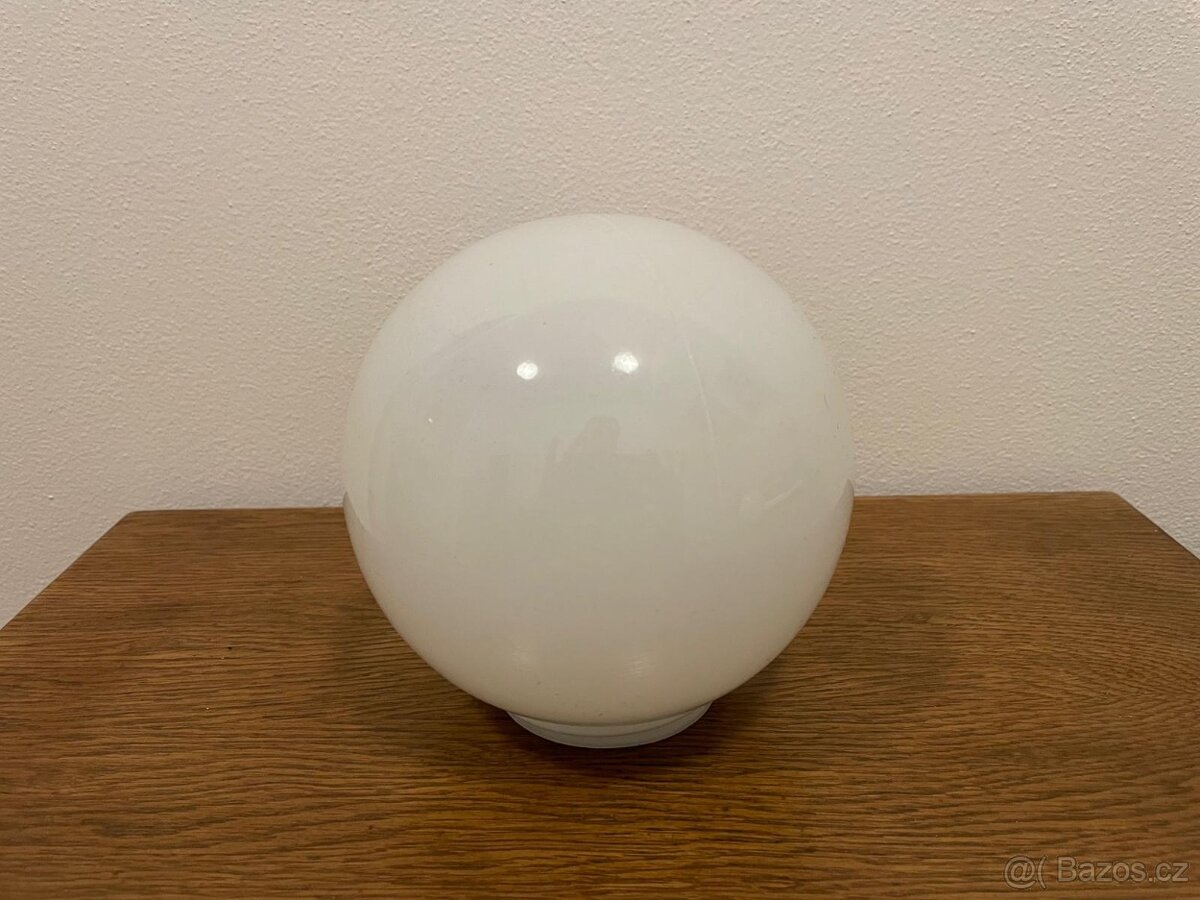 Retro kulaté stínidlo bílé barvy. Mám 2ks, stejný průměr šroubení, jedno je méně čiré a větší a druhé naopak - menší a bělejší. Obě sedí do socialistických panelákových objímek z umakartových jader. Cena za jeden kus. Vzhledem ke křehkosti preferuji osobní vyzvednutí, ale lze i poslat, jen za rozbití neručím. Díky za pochopení.