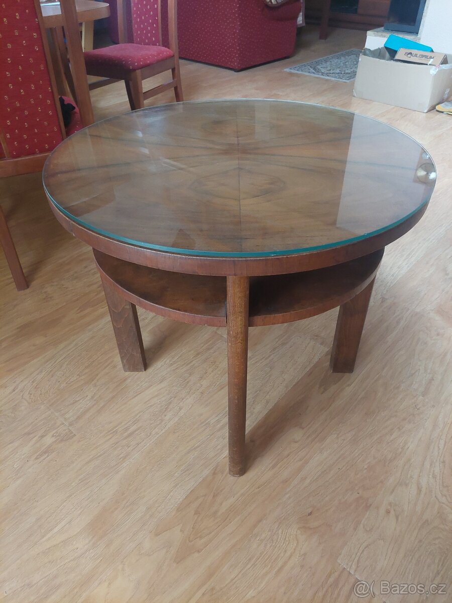 Podám stolek s dubového dřeva,kulatý,průměr 72cm,výška 62cm. Včetně skla.