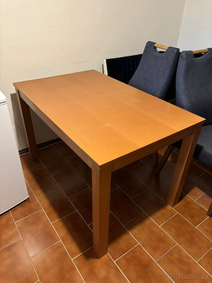Obdélníkový jídelní stůl v jednoduchém designu.
