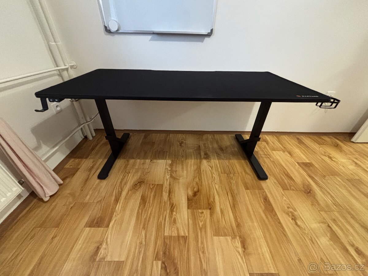 Ocelový herni stul, RGB podsvícení s několika barvami, nastavitelná výška 71, 76 a 81cm, rozměr desky je 160x75x1,6. Textilní podložka přes celý stůl s protiskluzovou úpravou, držák na nápoje a sluchátka, držák na kabely. Nosnost 100kg.