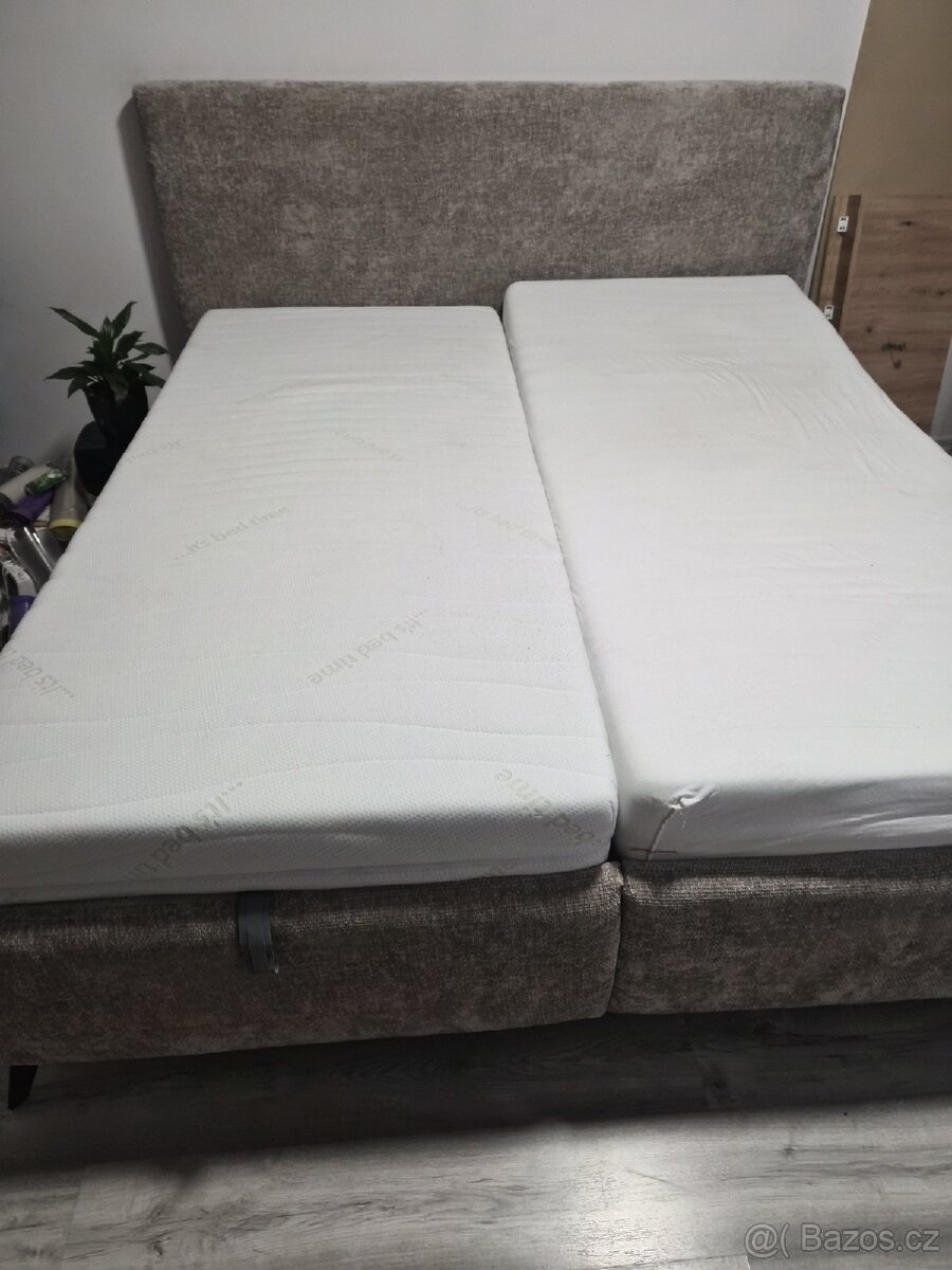 Prodám manželskou polohovací postel180x200. Velmi dobrý stav. Stáří 6měsíců. Původní cena 23000,- bez jediného poškození. Důvod prodeje stěhování do menšího.