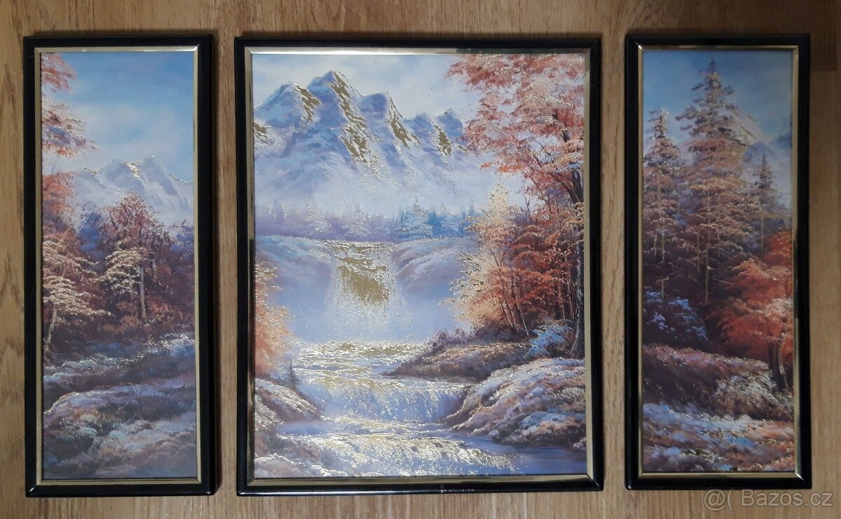 Prodám troj-obrázek-hory, velikost prostření 25x20cm, krajní 25x10cm, viz foto. Cena 70,-Kč.