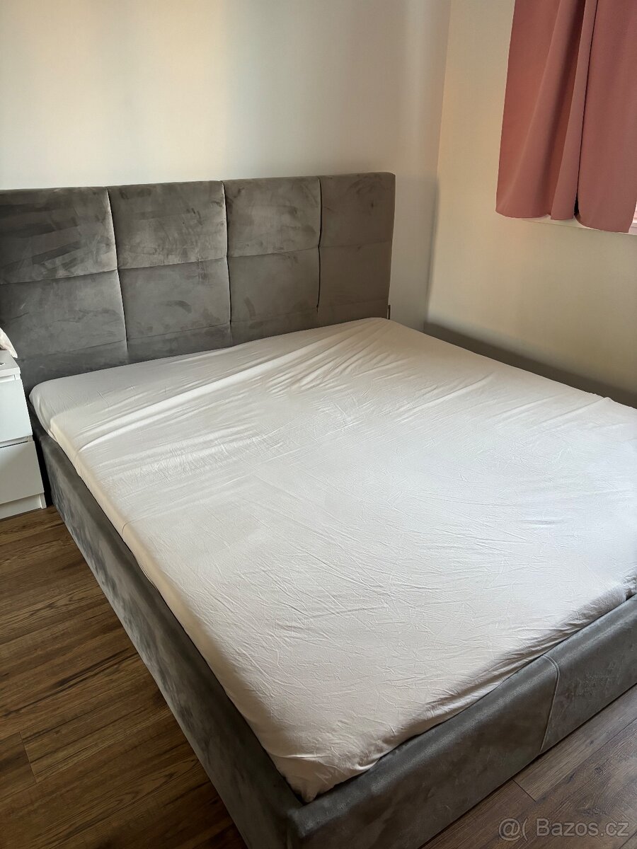 Manželská postel 180x200 s úložným prostorem + rošty + noční - [14.2. 2026]Prodám moderní manželskou postel o rozměru 180x200 cm ve velmi dobrém stavu.