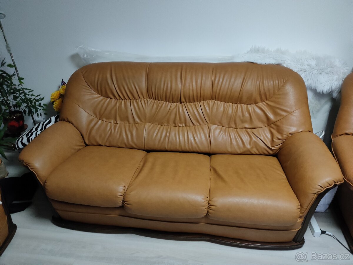 Prodám použitou rozkládací sedací soupravu 3+2+1. Materiál eko kůže. Velikost rozloženého lůžka je 140x190 cm. Rozměry jednotlivých částí: křeslo (š x h x v) 95 x 105 x 90 cm, dvojsedačka 145 x 105 x 90 cm a trojsedačka 200 x105 x 90 cm. Vše pěkné, neponičené.