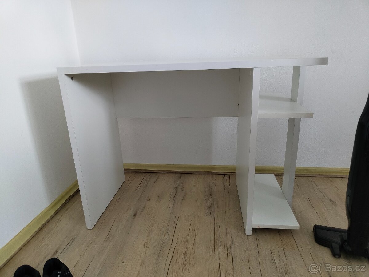 Prodávám psací stůl v dobrém stavu se třema malýma vadama - [15.2. 2026]Prodávám psací stůl v dobrém stavu stavu, jediné 3 vady: malý škrábanec na rohu štola,flek v poličce a nejde zašroubovat jeden šroubek police která je vedle nohou