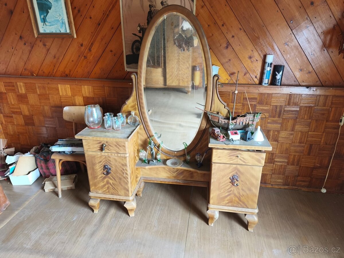 Prodám sestavu historického nábytku - dřevo - žádná dřevotříska. Skříň, dva noční stolky, zrcadlová toaleta. Platba POUZE předem nebo OSOBNĚ v hotovosti. Za dopravu si ručí zákazník.