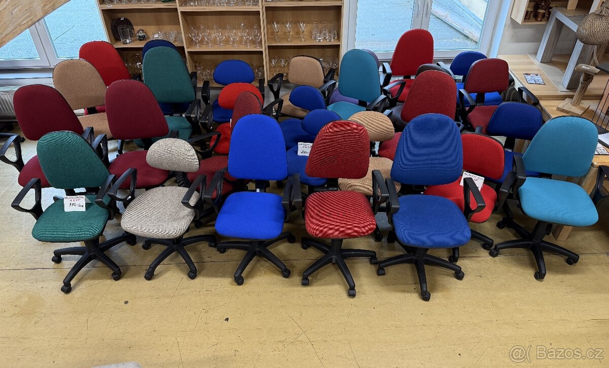 Nové kancelářské židle - výškově stavitelné i pevné, s područkami i bez područek. Možnost výběru barvy u potahové látky. ČESKÁ VÝROBA.
