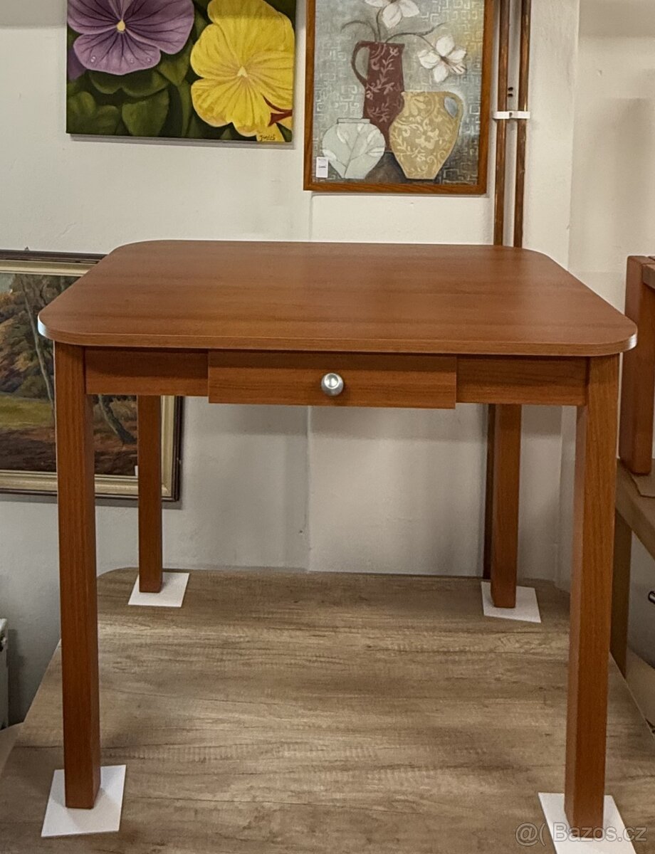 Nový jídelní stůl se zásuvkou, zaoblené hrany. Hrany ABS. Barva tmavě hnědá, bílá. ČESKÁ VÝROBA.