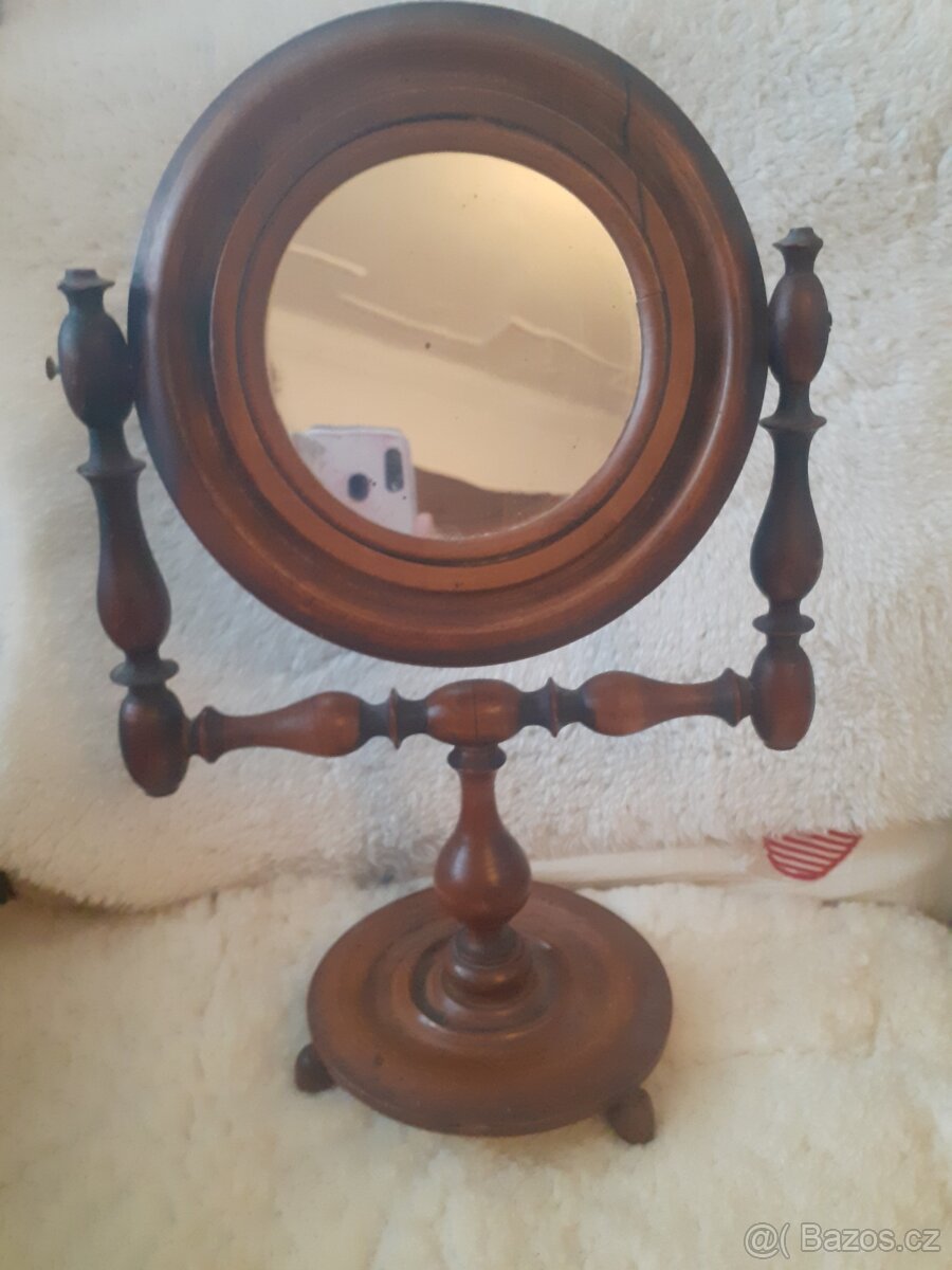 Prodám starožitné zrcadlo, výška 40cm,šířka 27cm.Chybí 1 nožka.