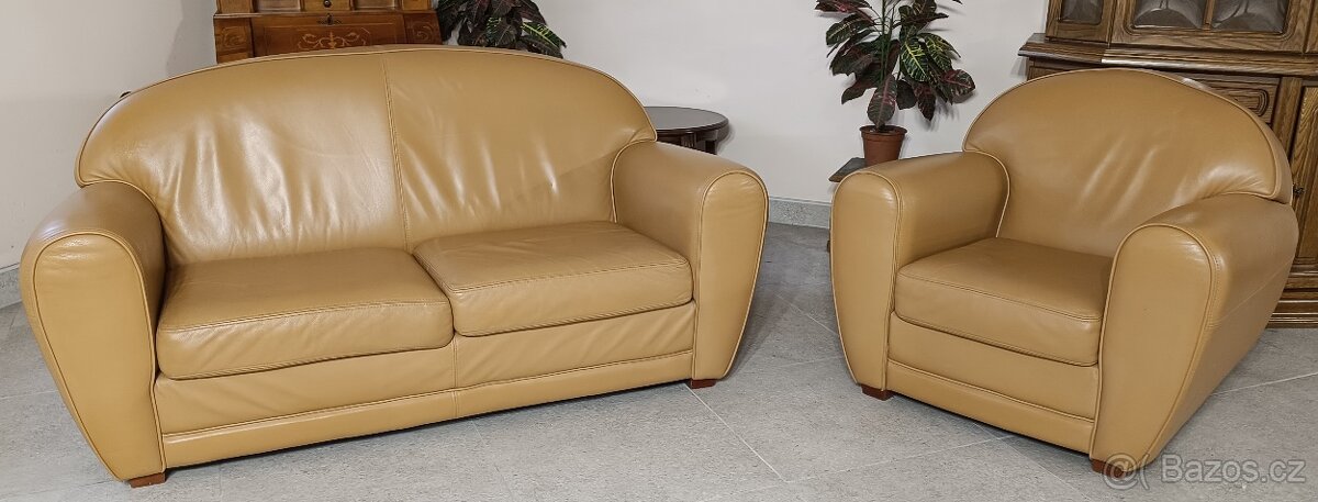 Nabízím pěknou, koženou, sedací soupravu 2+1 v retro stylu. Sedací souprava jeví menší známky užívání, kůže je silná, nikde roztržená, barva světle béžová. Sedací souprava je celokožená, vhodné do otevřených prostor. Z nekuřáckých prostor. Rozměry: Š: 2 - 160cm, 1 - 100cm, H: 90cm, V: 90cm. Sedací souprava se nachází: Strojetice 43986, okres Louny.