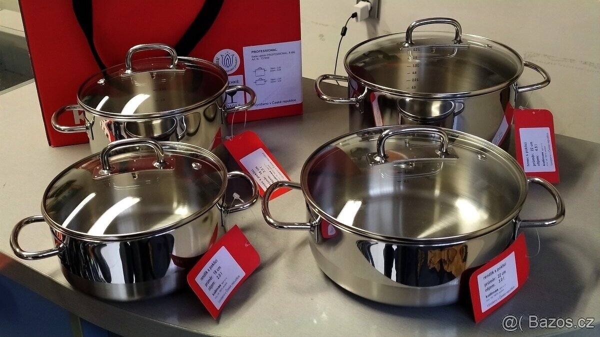 Sada nadobi - [17.2. 2026]Prodám úplně novou sadu nerezových kastrol s vičkami. Zabaleno. Chybná zásilka.