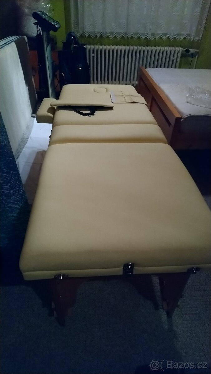 Prodám zánovní rozkládací masážní stůl větších rozměrů, s nastavitelnou výškou stolu a opěrné vrchní poloviny ležení, béžové barvy. Telefon: 605-567-488