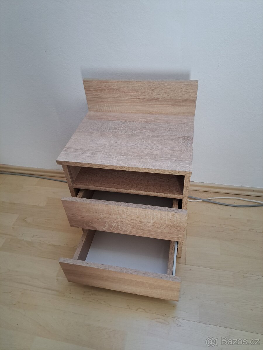 Prodám noční stolek, velmi dobrý stav, materiál dřevotříska. Rozměry: výška 59cm, šířka 40cm, hloubka 32,5 cm.