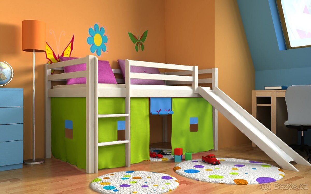 Dětská vyvýšená postel se skluzavkou. Rozměr matrace 180x80 cm. Včetně matrace. Barva bílá. Používaná 3 roky.Celkem zachovalá. Fotky jsou z internetu. Osobní odběr.