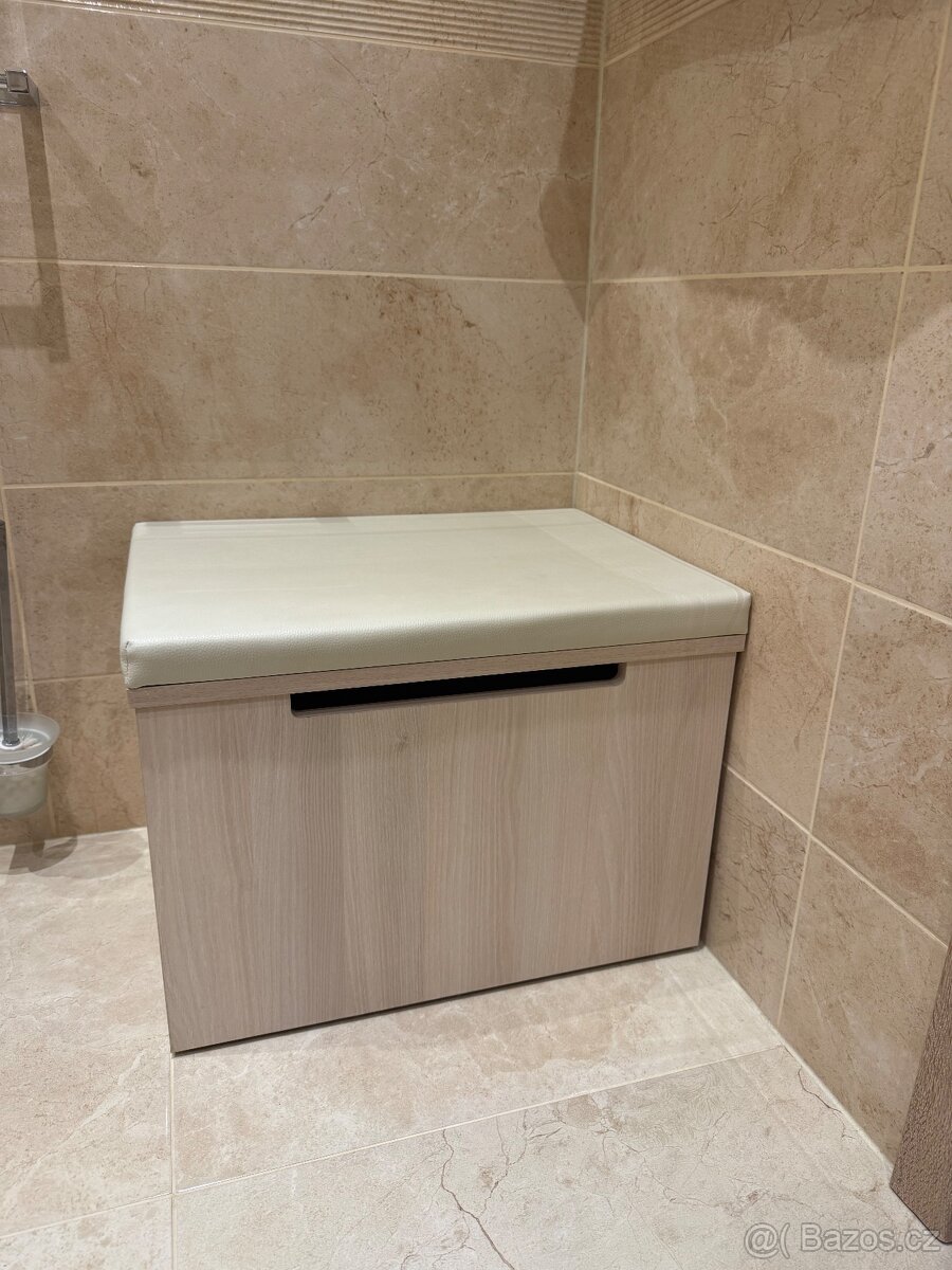 Prodam taburet do koupelny, koupeny v Siku. Prodavan, z duvodu nevyuziti. Taburet jako novy, na koleckach. Svetle drevo. Mozno pouzit i jako pradelnik.