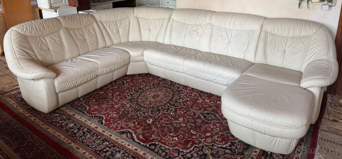 Prodám velmi pěknou koženou sedačku ve světlém odstínu ve tvaru U.