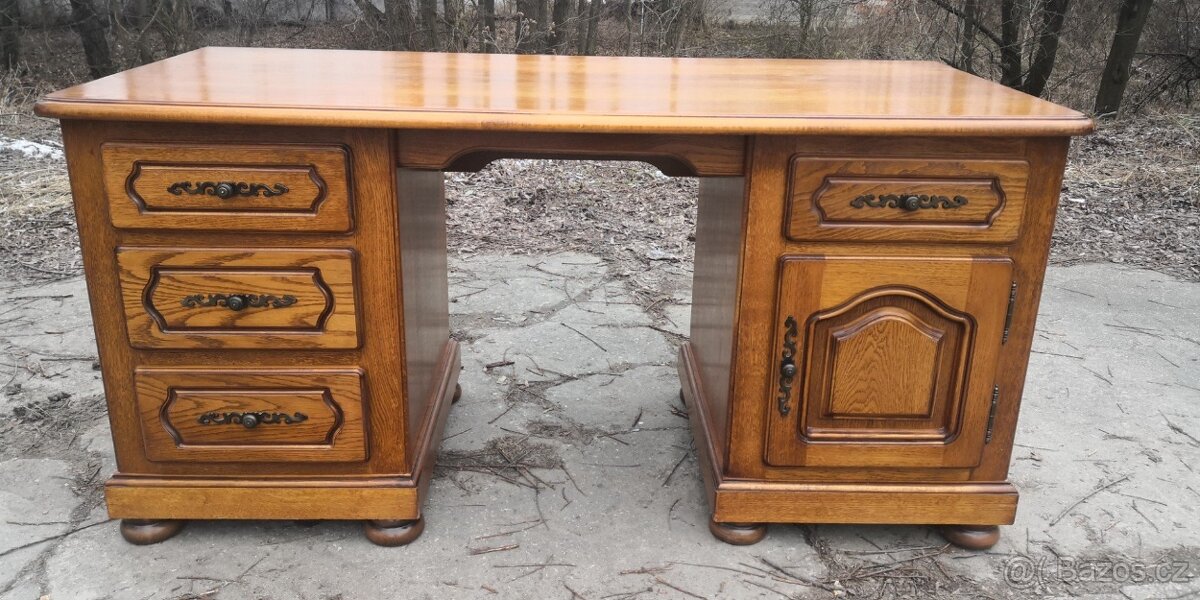 Masivní dubový psací stůl - [8.2. 2026]Prodám velký,prostorný masivní dubový psací stůl. Rozměry: šířka-165cm,hloubka-85cm,výška-76cm. Stůl je vhodný do prostoru,je velmi těžký. Více pěkného masivního rustikálního nábytku najdete - leerinabytek.