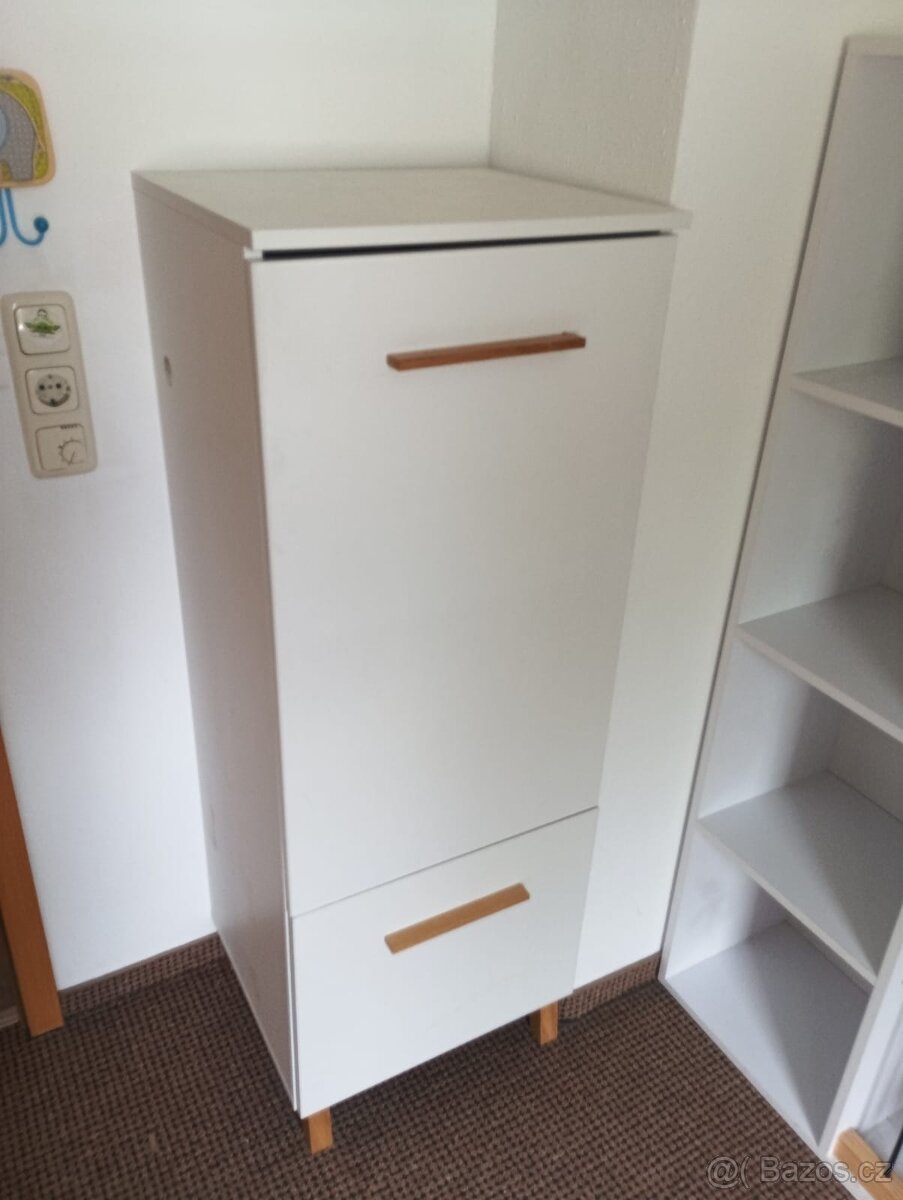 Prodám komodu ze šuplikem ,rozměry 47cm šiře,127cm vyška a hloubka 43cm , velice slušný stav.