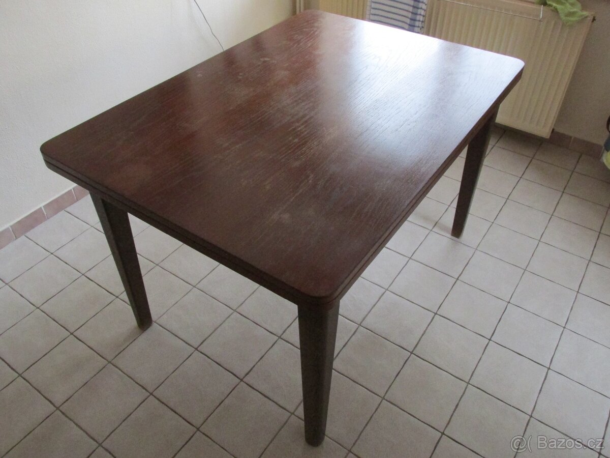 prodám zachovalý / úměrně stáří / , neponičený rozkládací / vyklopením / jídelní stůl , bytelný / nerozviklaný, kostra lepená šroubovaná / rozměr : 120 cm / rozložený 240 cm / x 85 cm, výška 76 cm,