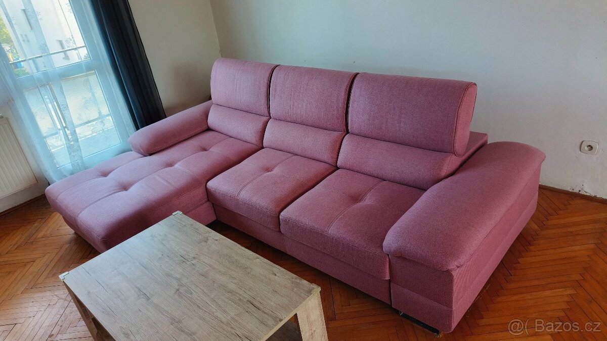 Prodám téměř novou a velmi málo používanou rozkládací soupravu ve 100% stavu. Opěrky hlavy jsou polohovací. Velmi kvalitní potah aqua. Nenasákne např rozlitou vodu, kávu atd... Barva na fotografii neodpovídá. Je více světlejší a trochu do šeda. Nejvíc se podobá na nejsvětlejší fotce. Nelze líp nafotit. Opravdu kvalitní a vyšší posezení s nastavitelnými podhlavníky. 100% stav Rozměry: délka 280cm, šířka 180cm, výška sedáku 43cm. Velmi pohodlná. Důvod prodeje- stěhování.