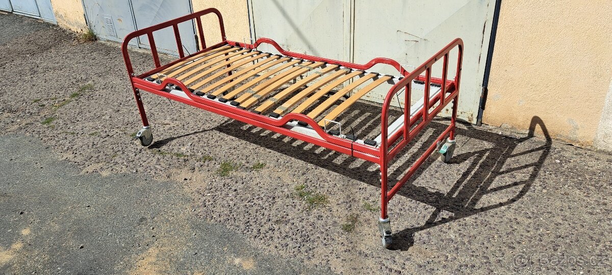 Nabízím polohovací postel ve vynikajícím stavu- robustní kovová konstrukcí, postel na pojízdných kolečkách.