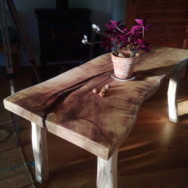 Ručně vyráběný konferenční stolek ze vzrostlého stromu Morušovníku Bílého. Nohy jsou z ručně otesavaneho akátu. Opravdu jedinečný kousek stoleté moruše, který už jen tak někde neuvidíte:).Má krásnou kresbu a barevnost. nový originál kus skladem - Z dílny Anyny Dřeviny.
