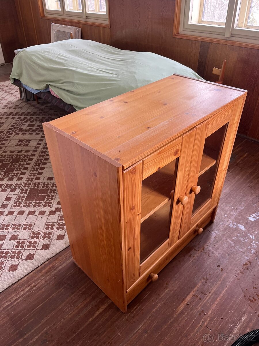 Nízká dřevěná skřínka - [11.3. 2026]Skříňka nízká z části prosklená. Možno použít i jako televizní stolek.