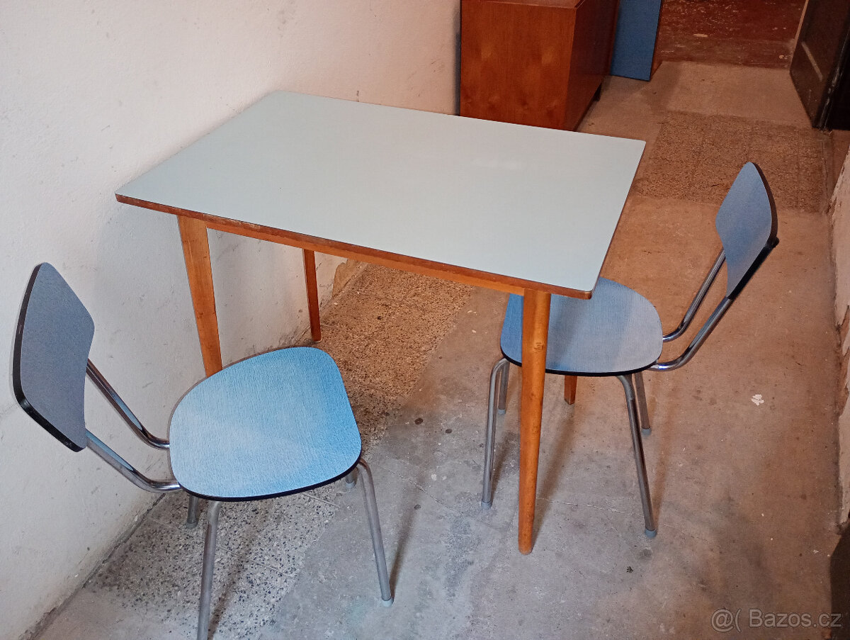 Kuchyňský stůl + 2 židle ,ČSSR 1975