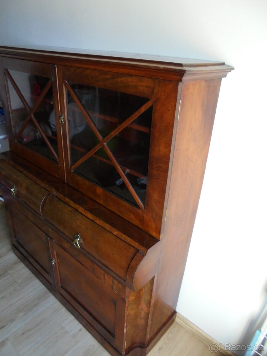 Starožitný psací sekretář s nástavcem – ořechová kořenice - [14.3. 2026]Nabízím krásný stylový sekretář s nástavcem. Nábytek je dýhovaný ořechovou kořenicí s velmi dekorativní kresbou dřeva.