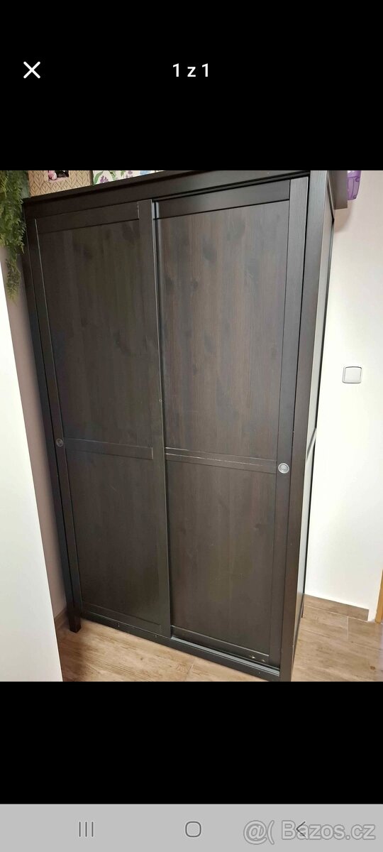 Prodáme šatní skříň Hemnes Ikea, je bez velkých poškození, jen oděrky od používání.( při vážném zájmu nafotím) Je dřevěná- černohněde mořidlo.