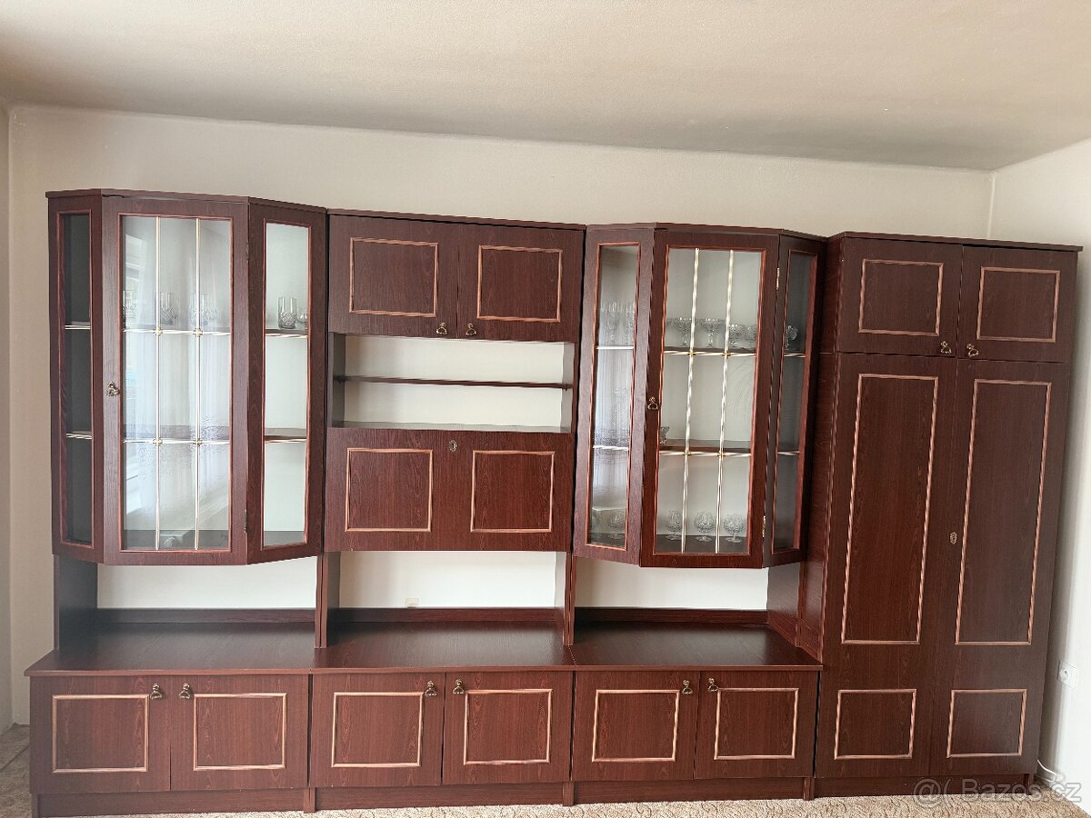 Klasická obývací stěna - [19.2. 2026]Zachovalá obývací stěna, 3 samostatné díly vedle sebe, rozebíratelná. Možnost také samostatné velké skříně.
