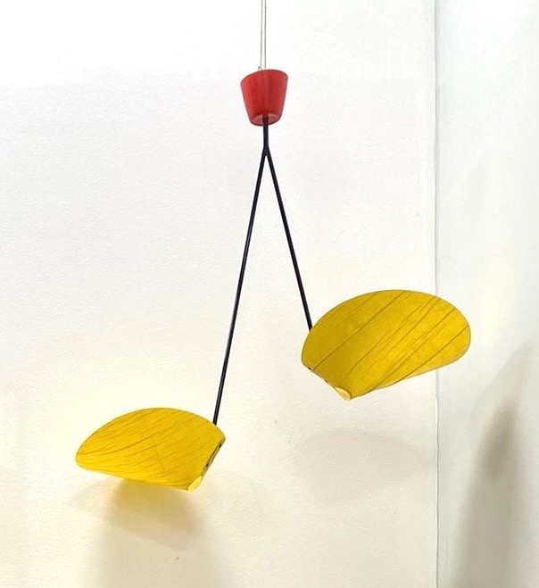 Prodávám krásné, bruselské, retro stropní světlo, výroba ČSSR 60. léta, kovová konstrukce, dvě objímky, stínidla plast sytě žlutá barva. Původní, velmi zachovalý stav, plně funkční. Cena 2800 Kč, možnost dopravy.