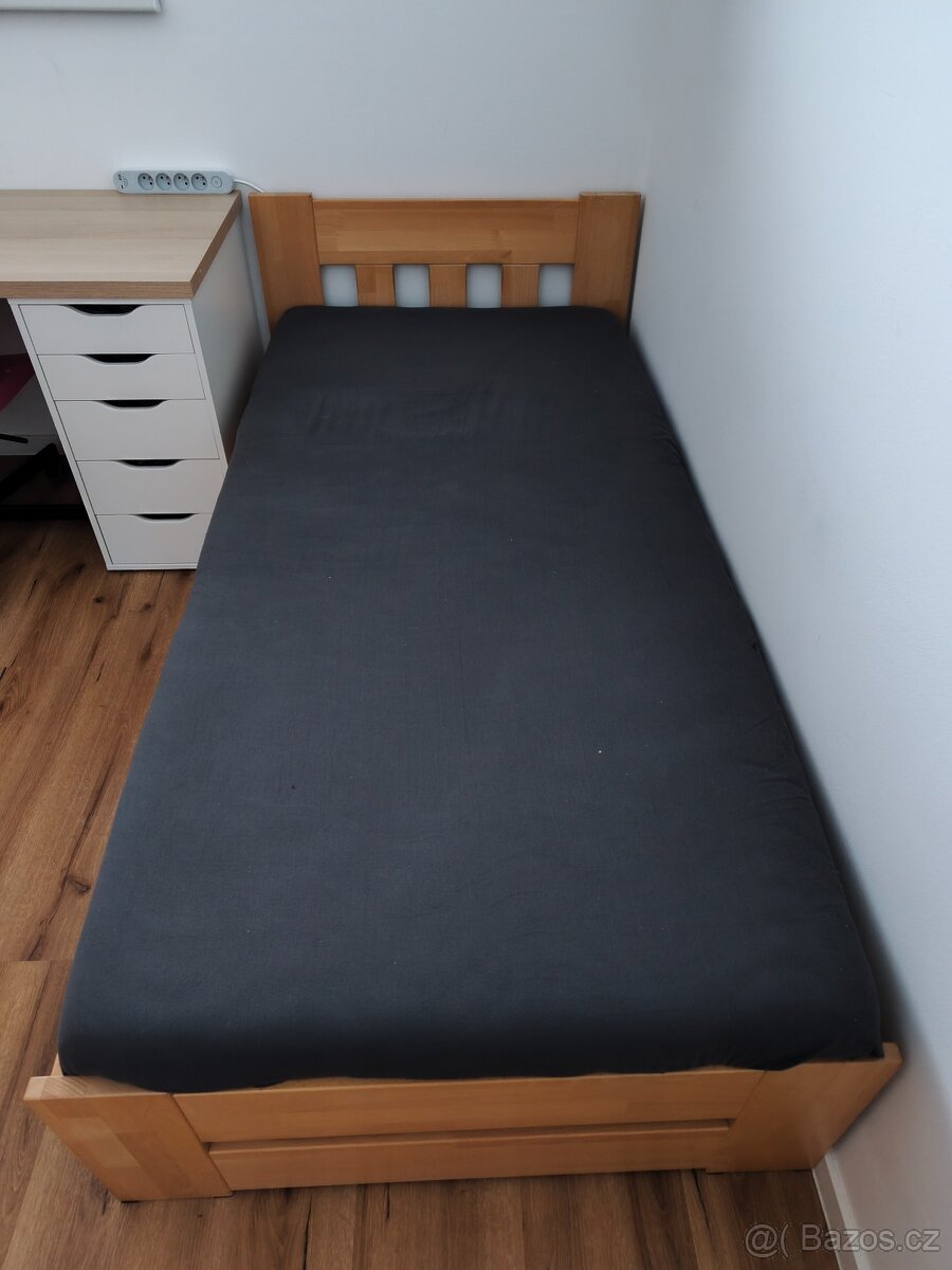 Prodám dětskou postel HP nábytek Filip Klasik rozměr 197x97 včetně matrace, masiv buk cink, přírodní za