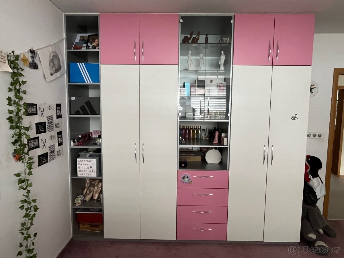 Prodám vestavěnou skříň 2,6x2,5x0,6m. Postel 2,06x1,06x0,78m a stůl 1,67x0,67x0,76m. Noční stolek. Vše z kvalitní lamino s ABS hranou. Velmi pěkné do dívčího dětského pokoje. Demontáž a doprava vlastní.