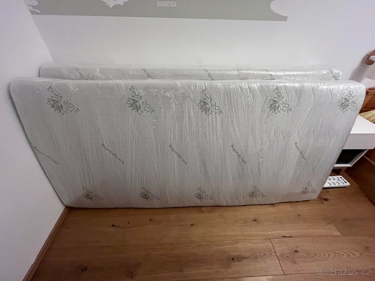 Prodám 2ks matrace 100x210x21, tuhost T4. Kupované před 3 lety, ještě 2 roky platná záruka na jádro matrace. Max. nosnost 130 kg/matrac. Antibakteriální potah Aloe Vera Silver, snímatelný.