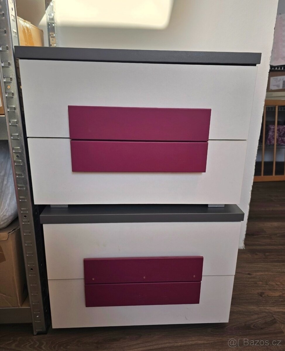 Prodám dva noční stolky. Jeden stolek ma díry na madle.