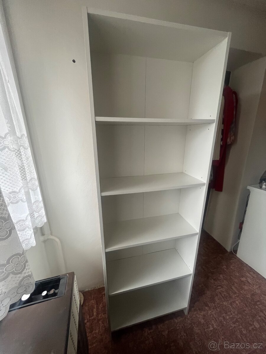 Prodám 2 roky používanou knihovnu/regál bílé barvy, nahoře 2 dírky po vrutech (připevnění ke zdi), na jedne straně drobné šmouhy viz. foto. V: 176 cm, Š: 60 cm, H: 24 cm