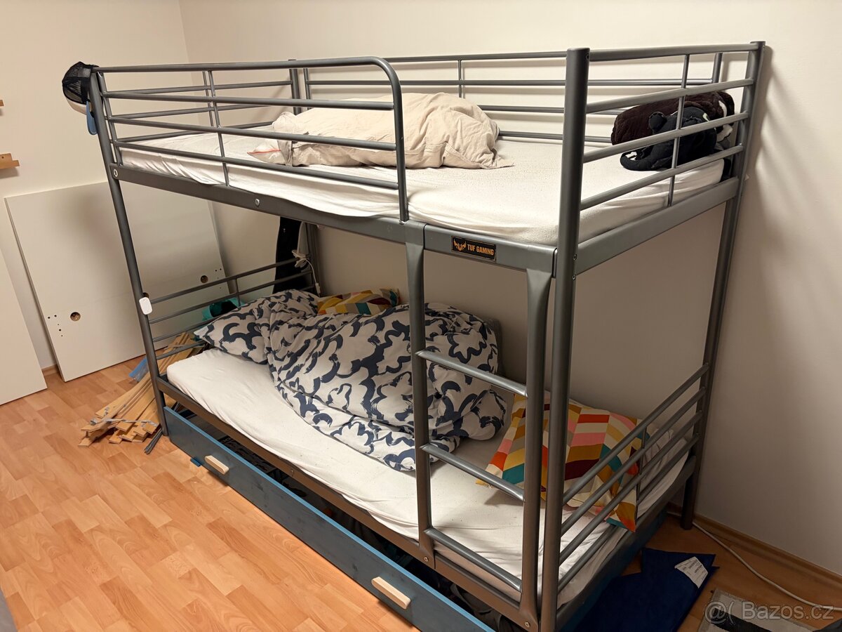 prodám ikea kovovou palandu (patrová postel) o rozměru 200x90, výška cca 170, včetně matrací a šuplíku.