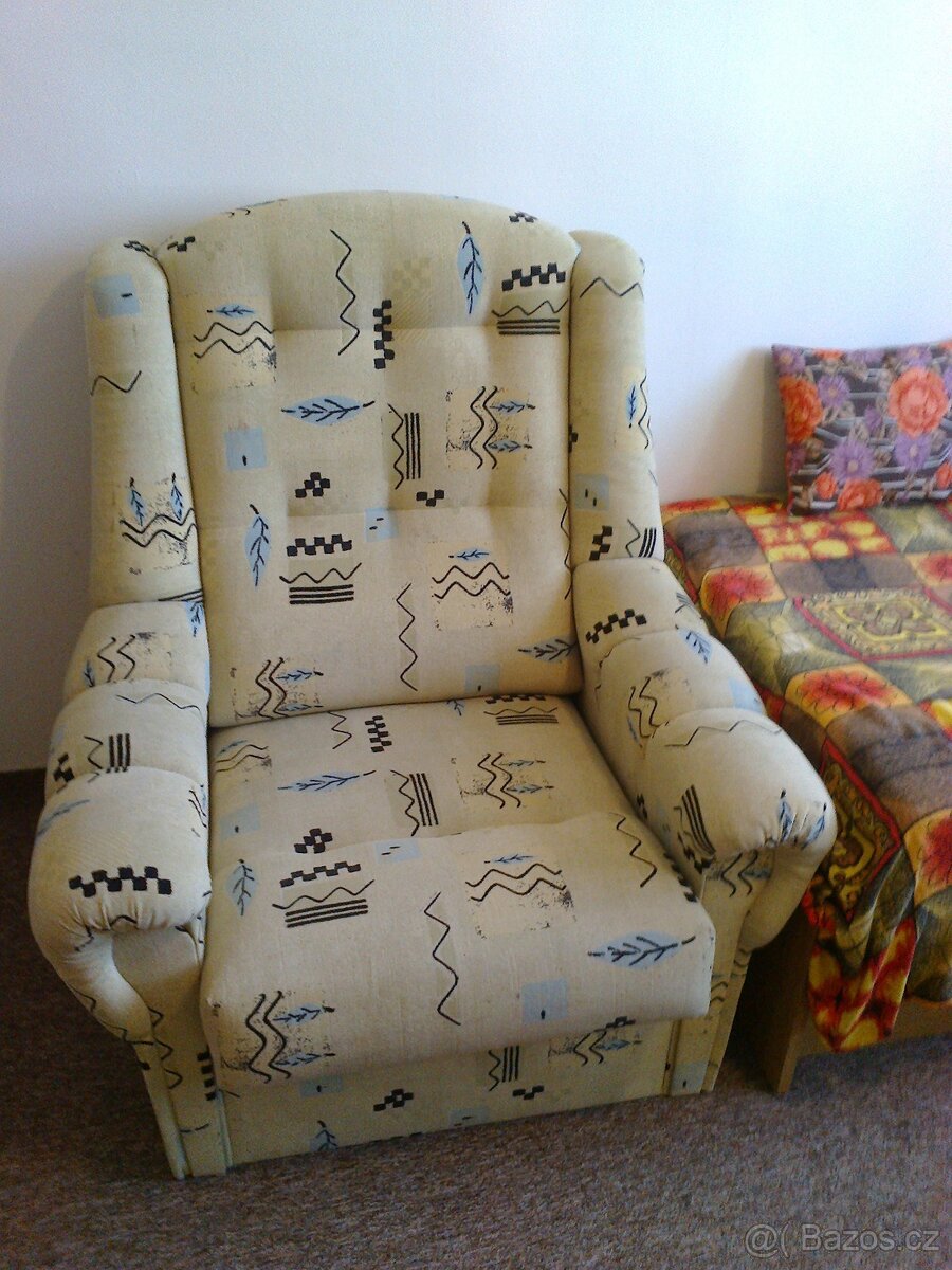 Prodám levně, čisté, nepoškozené a neopotřebované čalounění, pevný materiál barva béžová se vzorkem. 2 ks 4000.- Kč