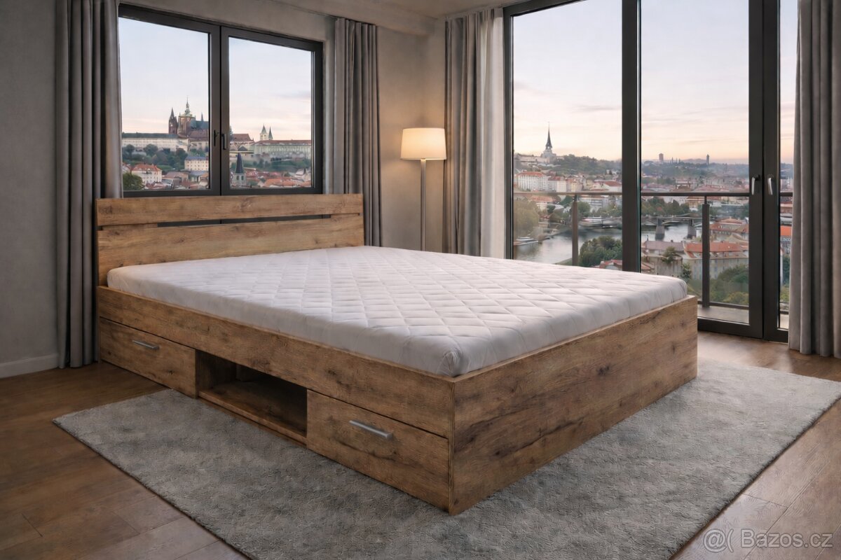 Nabízím novou multifunkční postel 160×200 cm v moderním dekoru dub wotan.
