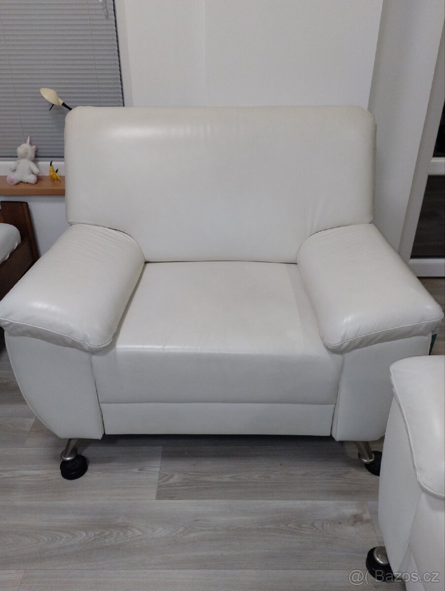 Prodám kvalitní retro koženou sedací soupravu v bílé barvě.