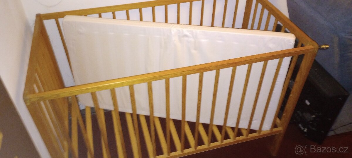 dětská postýlka - [20.2. 2026]prodám starší zachovalou dětskou postýlku 120 x 60 cm, dvě výškové polohy se zásuvkou jako úložným prostorem, včetně matrace, peřinek a povlečení. Osobní odběr.