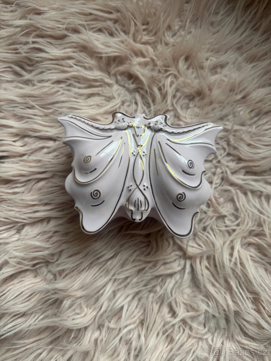 Krásná zlacená Dóza, Motýl, růžový porcelán - Značeno štítkem, Horní slavkov Czechoslovakia, 2 pol. 20 stol.