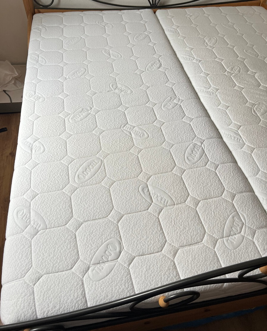 Prodáme zánovní kvalitní partnerské zdravotní matrace Materasso Lyocel Partner Biogreen 90x200cm vysoké 20cm. Fyziosystém - 7 zón tuhosti, sendvičové, zcela čisté, vyprané před nabídkou k prodeji, stěhování. Matrace z přírodních pěn Biogreen je nejvyšším modelem z řady matrací Partner Biogreen s rozdílnou tuhostí, 3/4. Je to matrace vhodná pro alergiky, vhodná při zdravotních problémech - proti bolesti zad a kříže. Zelená strana je tuhá, hnědá strana je středně tvrdá, je vyztužená odvětraným a tuhým jádrem ze značkové pěny Eliocell. Potah Lyocell obsahuje přírodní vlákna z dřevní celulózy, která dobře absorbuje a odvádí vlhkost, vysoká gramáž dutého vlákna, které maximálně odvede případnou vlhkost z potahu. Potah je snímatelný a pratelný na 60 °C, nosnost matrace do 140 kg. Mohu vypomoci s dovozem v okolí nebo přepravou. PC 16500kč/ks. Prodáme za 8000kč obě matrace. Více fotek.