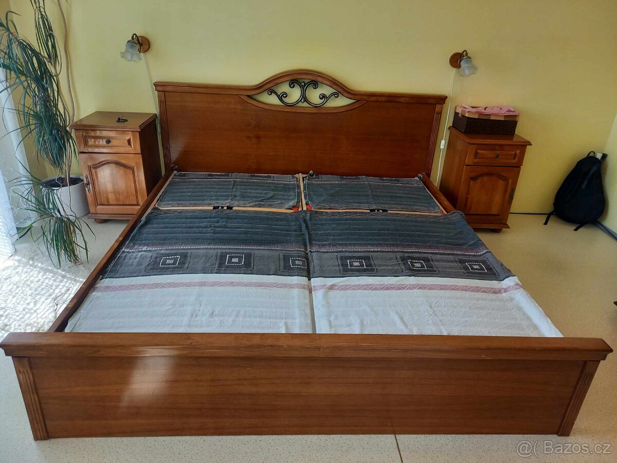 Prodáme zachovalou ložnici - postel, 2 x rošt, noční stolky, lampičky a skříň