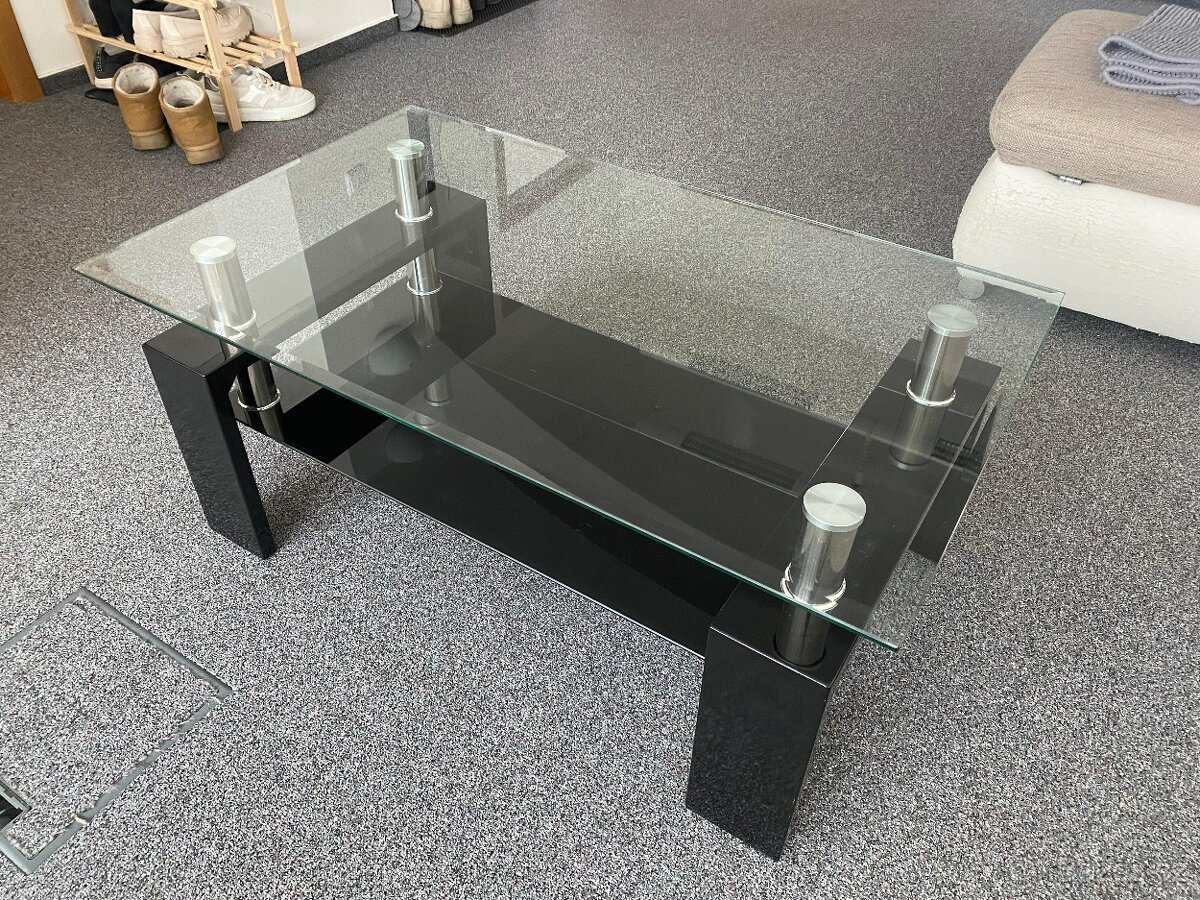 Černý skleněný konferenční stolek bez poškození.