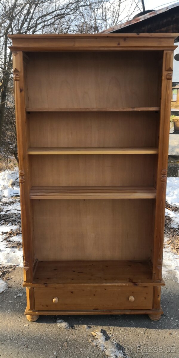 Prodám celomasivní regál-knihovnu s šuplíkem. Rozměry: šířka-95cm,hloubka-32cm,výška-183cm.